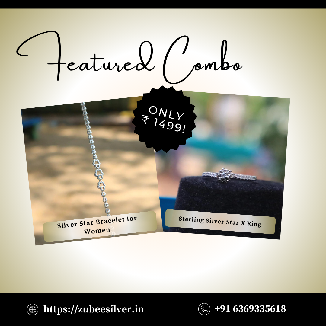 Elevate your style with our sterling silver star ring & bracelet. Crafted with high-quality silver, this bracelet & ring adds a touch of elegance to any outfit. Perfect for women, it's a versatile accessory that can be worn for any occasion.