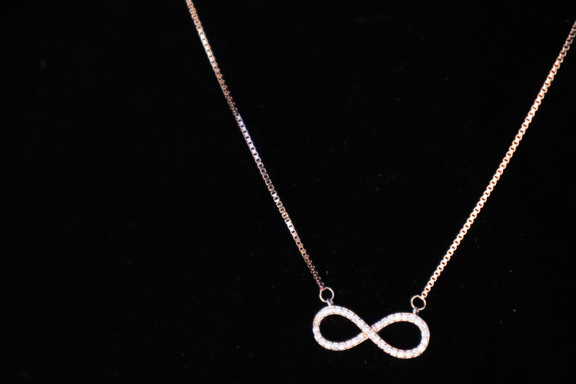 "Eternal Elegance, Infinite Grace: Adorn Your Neck with Timeless Beauty in Rose Gold and Silver Embrace."