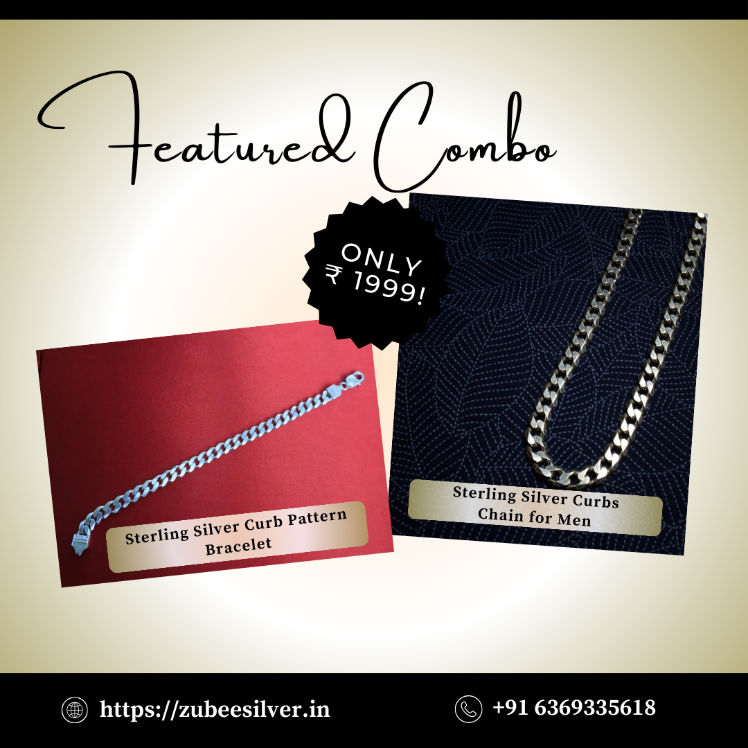 Elevate your style with our sterling silver curb pattern chain & bracelet. Crafted with high-quality silver, this pendant chain adds a touch of elegance to any outfit. Perfect for men, it's a versatile accessory that can be worn for any occasion.